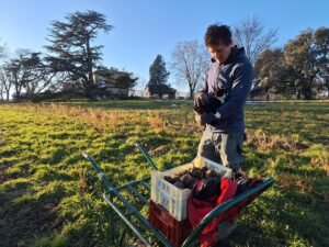 Des paniers de légumes bio cultivés dans le domaine sont disponibles à la commande tous les mardi avec La Grangette en Herbe.